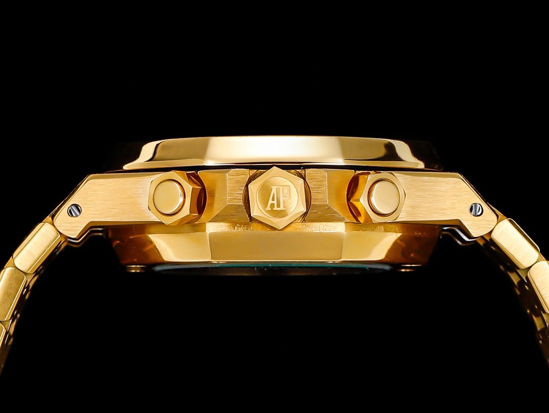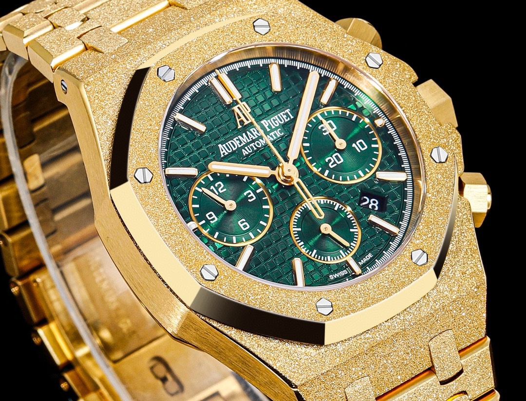 | Audemars Piguet Royal Oak Chronograph 41mm Green Dial Frost Yellow Gold Bezel 26331 | |