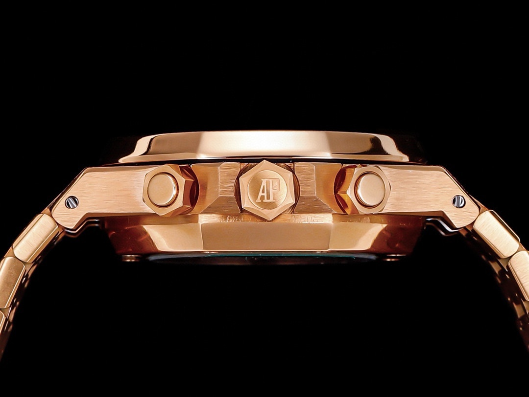 | Audemars Piguet Royal Oak Chronograph 41mm Green Pink Dial Frost Rose Gold Bezel 26331 | |