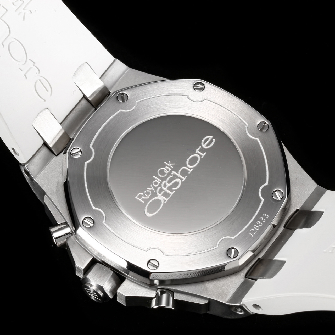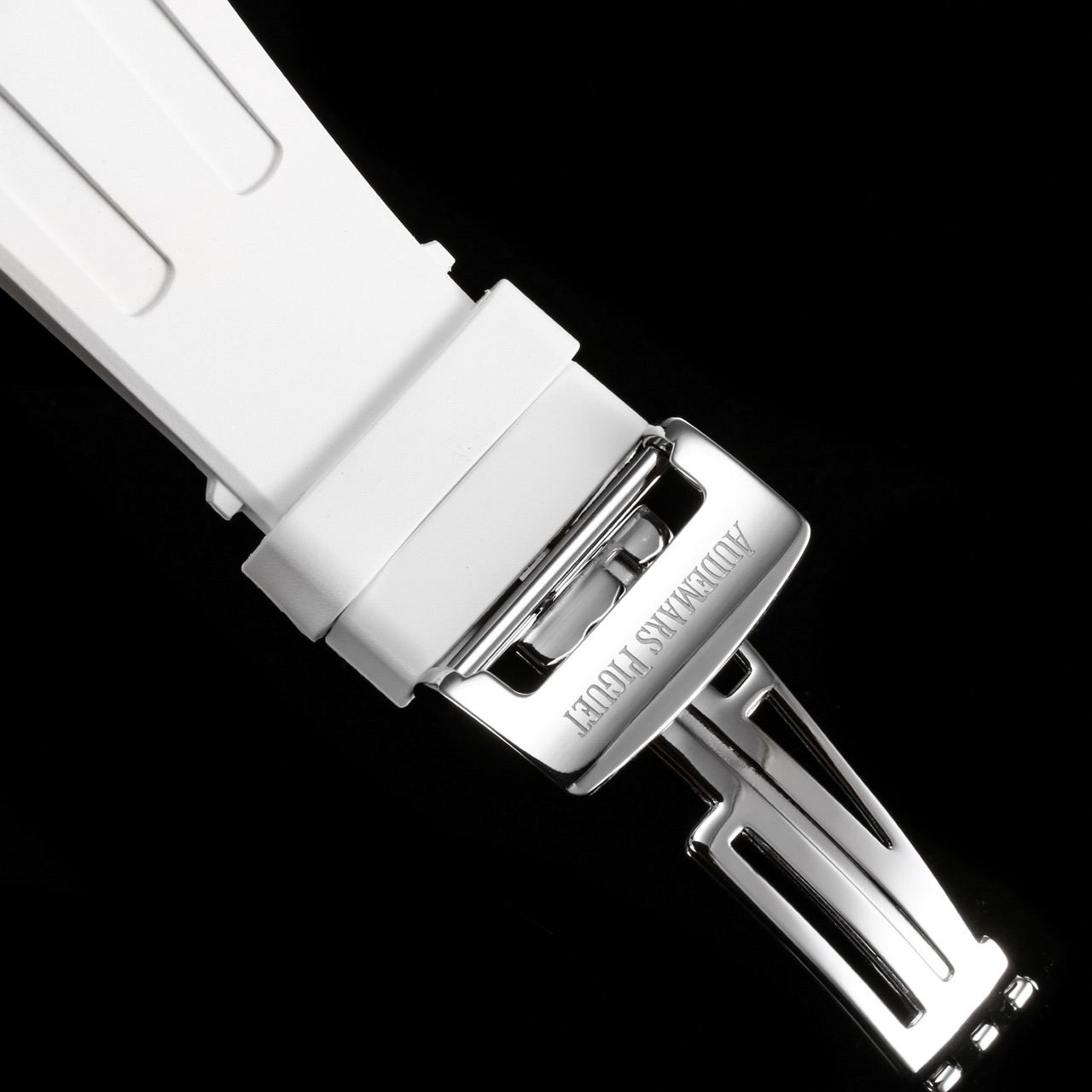 | Audemars Piguet Royale Oak Offshore Chronograph 37mm White Black Dial Diamond Steel Bezel White Rubber 26231 Lady | |