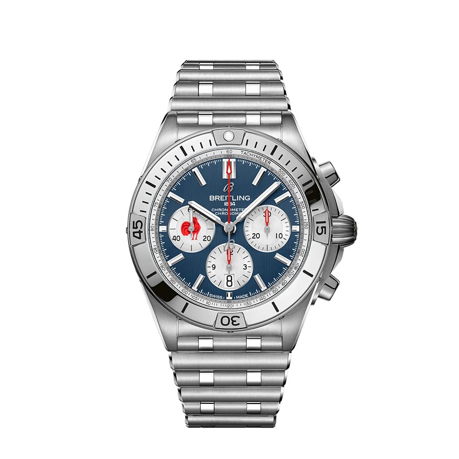 Breitling Chronomat France 42mm Blue White Dial Steel Bezel Steel Strap AB0134A81C1A1