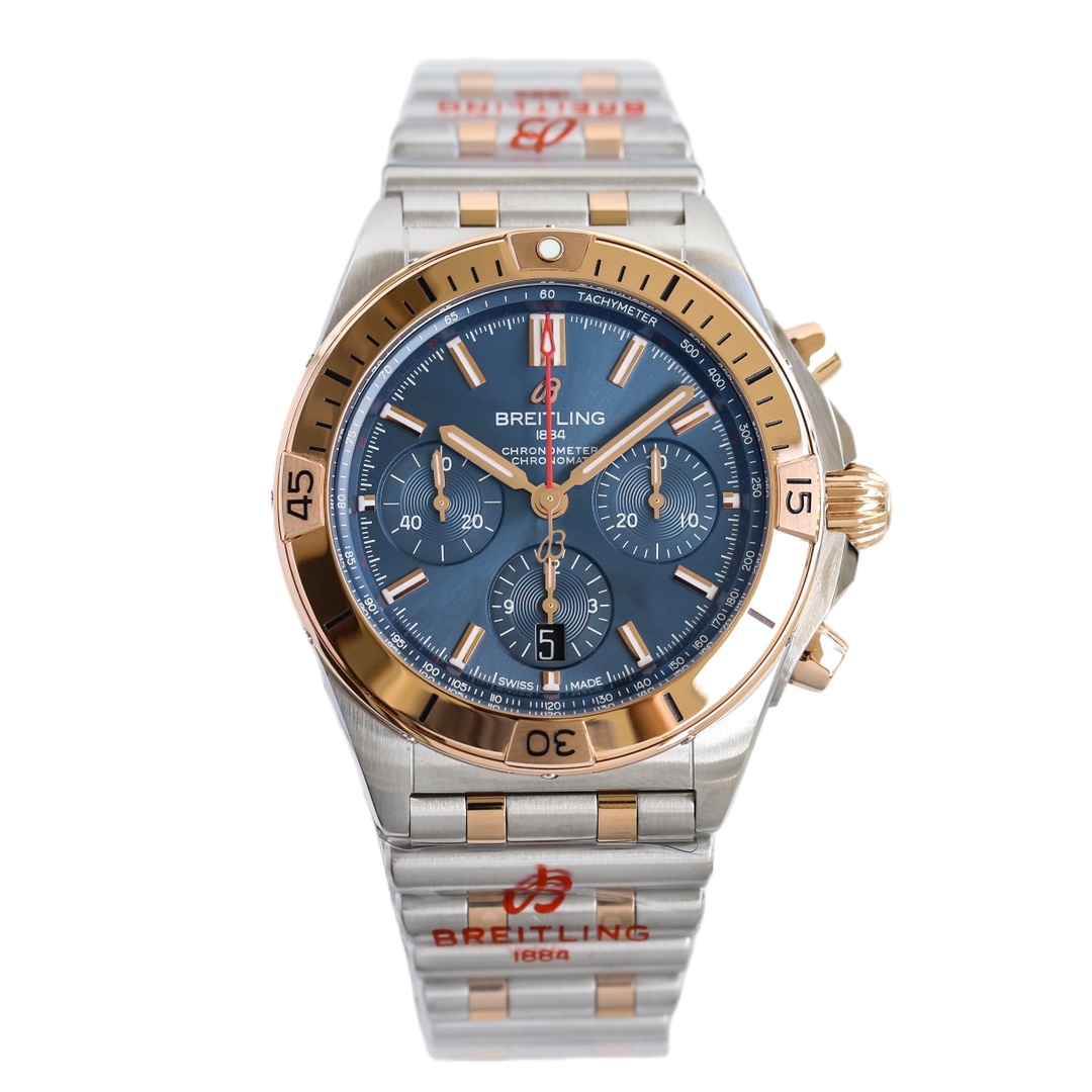 Breitling Chronomat 42mm Blue Dial Rose Gold Bezel Steel Strap UB0134101C1U1
