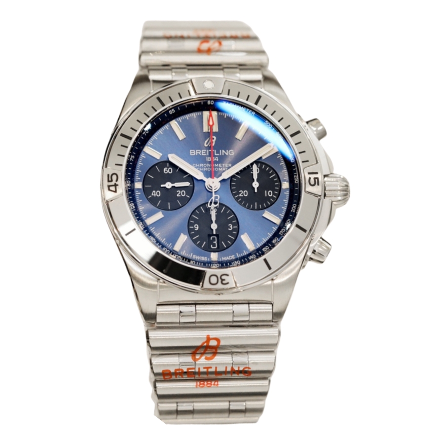 Breitling Chronomat 42mm Blue Black Dial Steel Bezel Steel Strap AB0134101C1A1