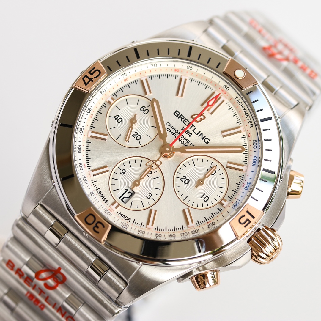 Breitling Chronomat 42mm Beige Dial Rose Gold Steel Bezel Steel Strap IB0134101G1A1