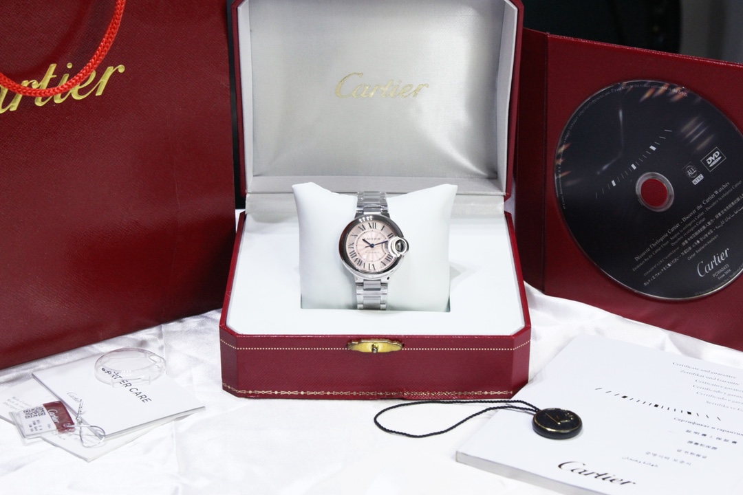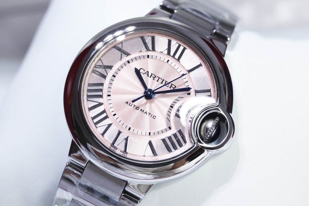 | Cartier Ballon Bleu 36mm 33mm Pink Dial Steel Bezel Strap WSBB0068 Ladies | |