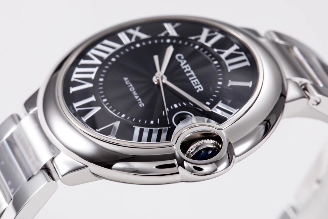 | Cartier Ballon Bleu 42mm Black Dial Steel Bezel Steel Strap W6920042 | |