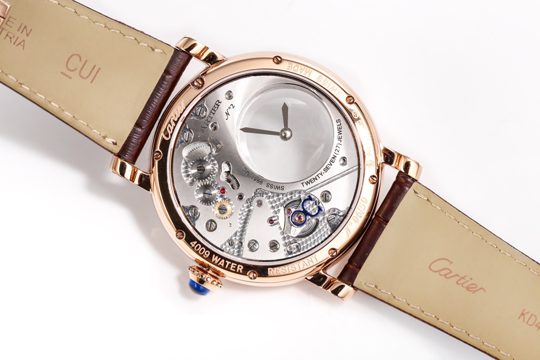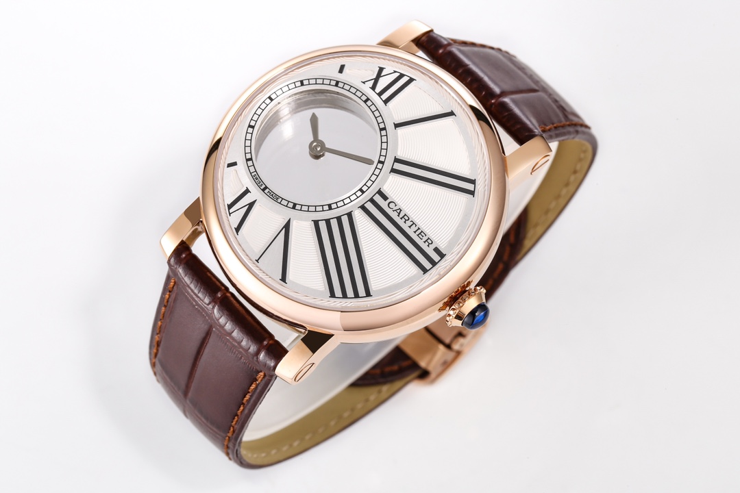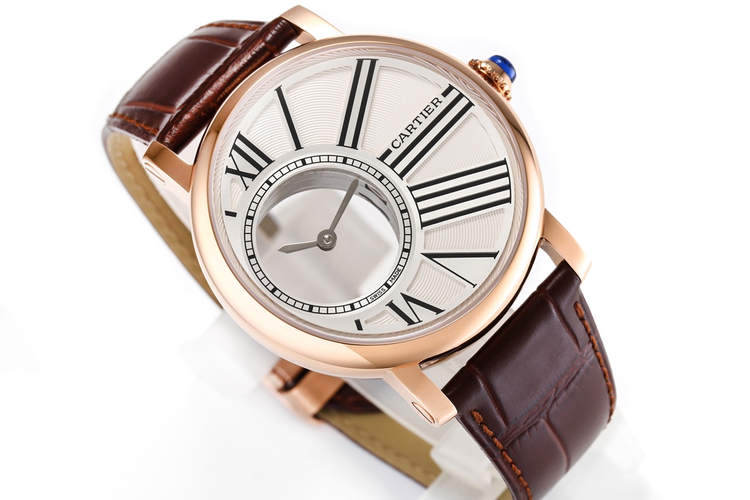 | Cartier Rotonde 42mm Hollow Dial Steel Bezel Black Leather Strap W1556223 | |