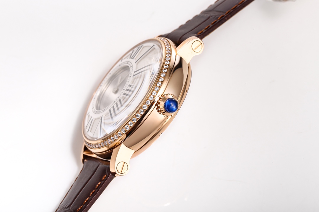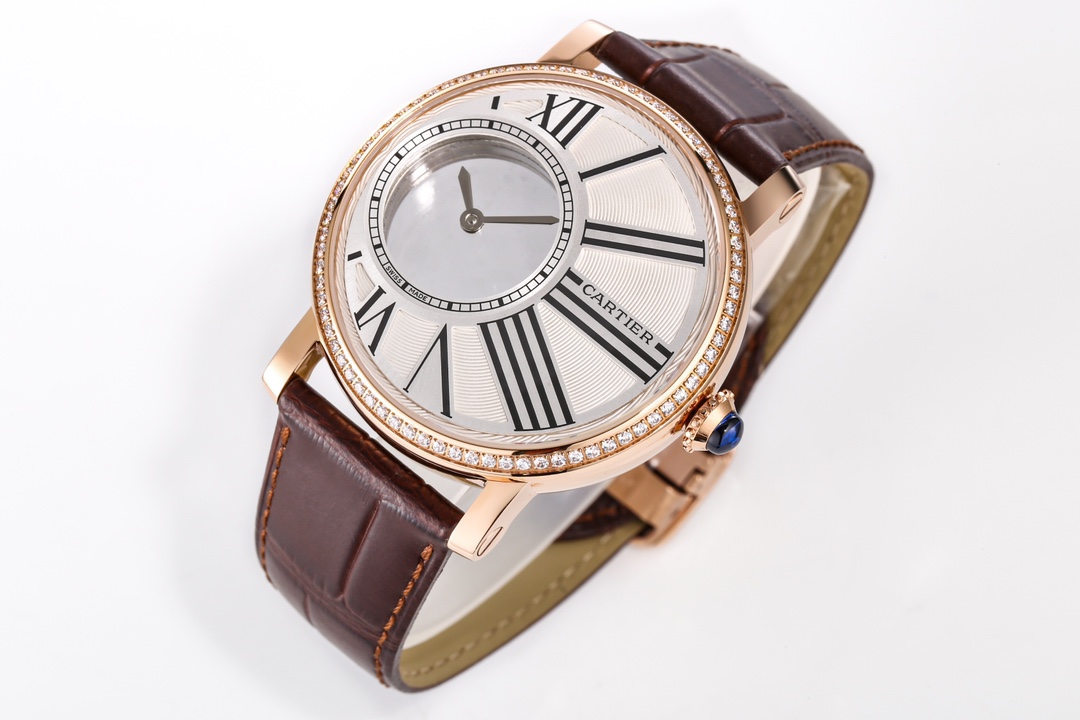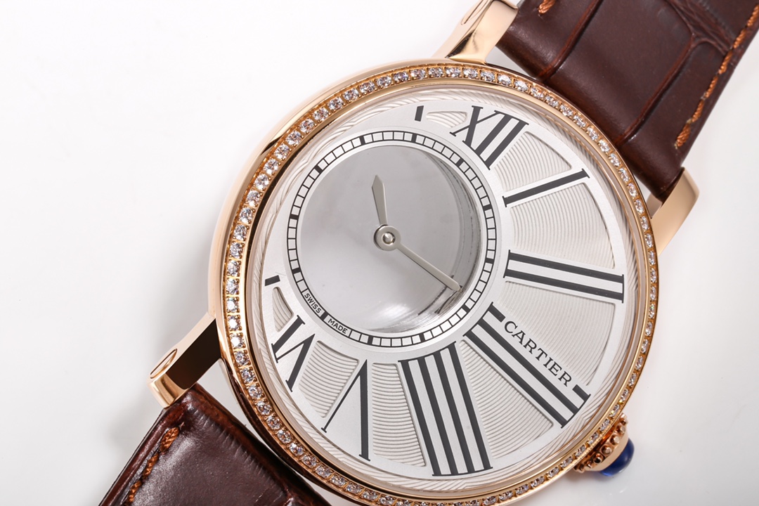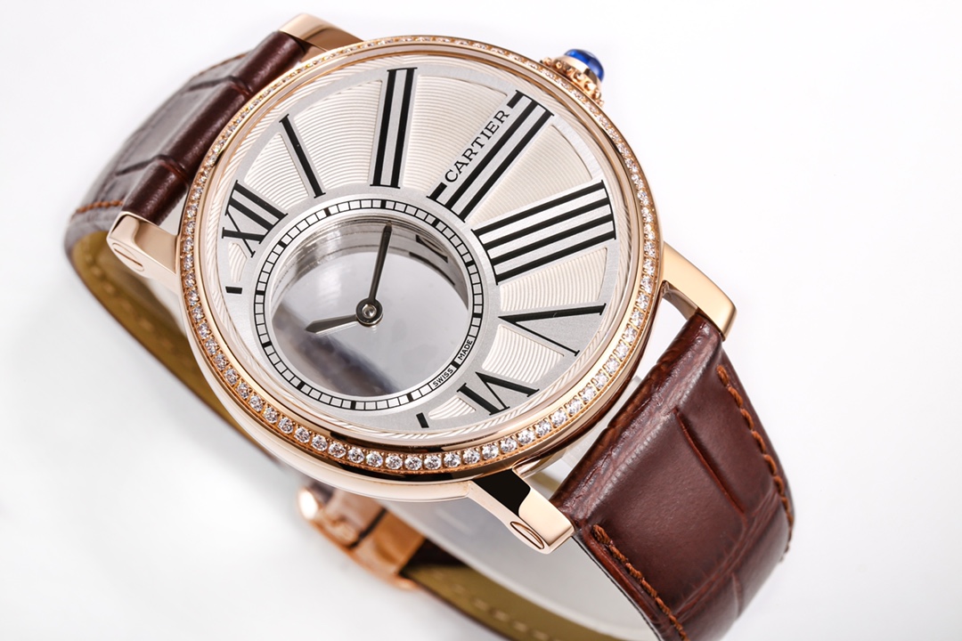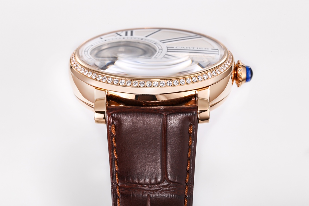 | Cartier Rotonde 42mm Hollow Dial Rose Gold Diamond Bezel Brown Leather Strap WD1556223 | |