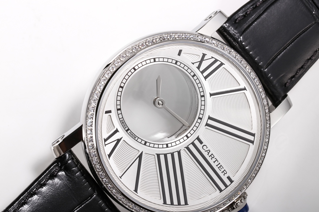 | Cartier Rotonde 42mm Hollow Dial Steel Bezel Black Leather Strap W1556224 | |