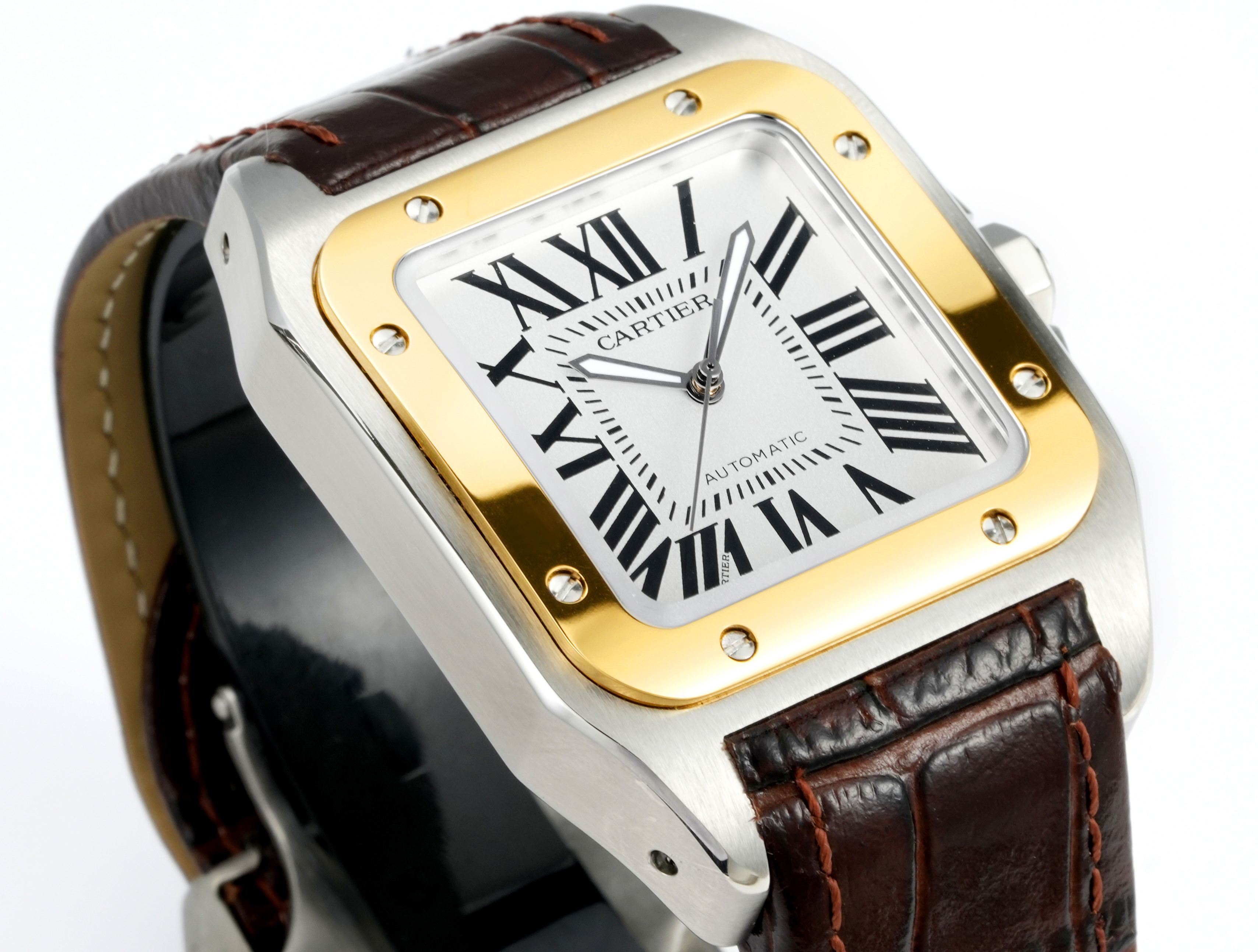 | Cartier Santos 41.3mm White Dial Yellow Gold Steel Bezel Brown Leather Strap W22071Y1 | |