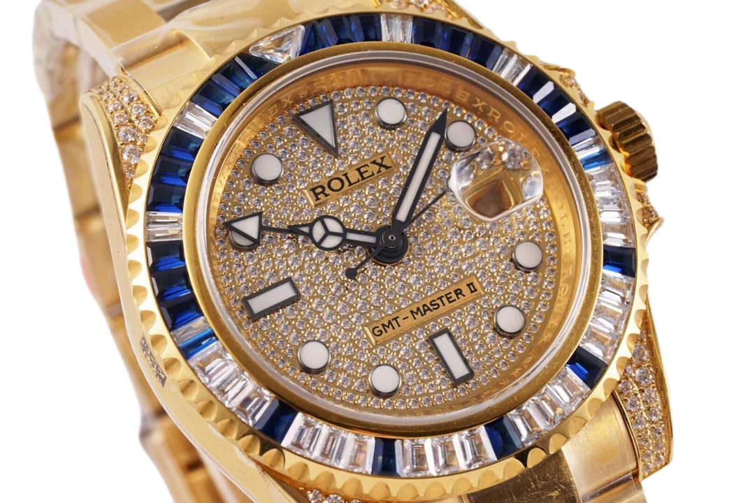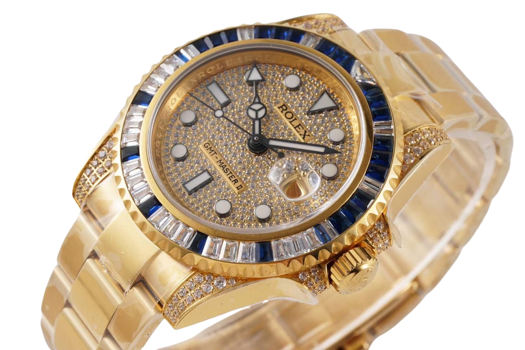 | Rolex GMT-Master ll 40mm Full Diamond Dial Yellow Gold Blue Diamond Bezel 116758SA-78208 | |