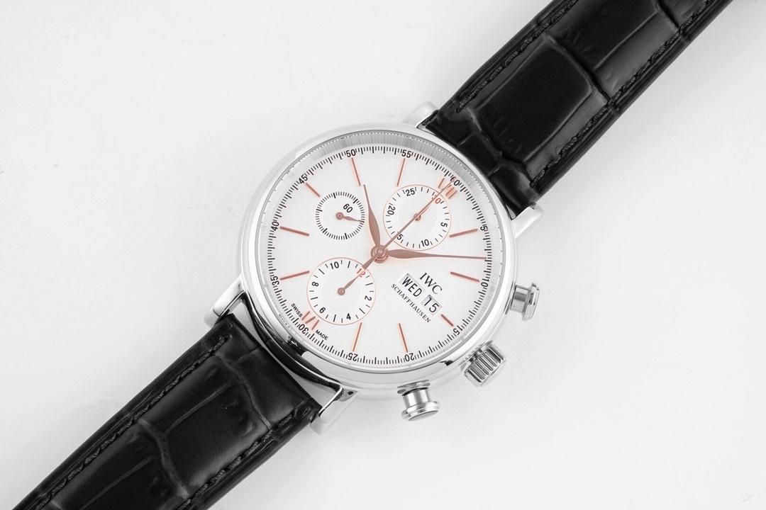 • IWC Portofino 42mm White Dial Steel Bezel Black Leather Strap IW391022