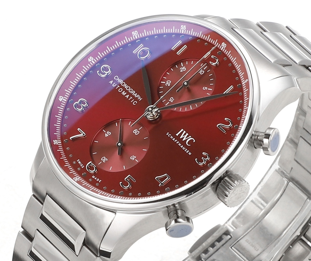 IWC Portugieser 41mm Red Dial Steel Bezel Steel Strap IW371615