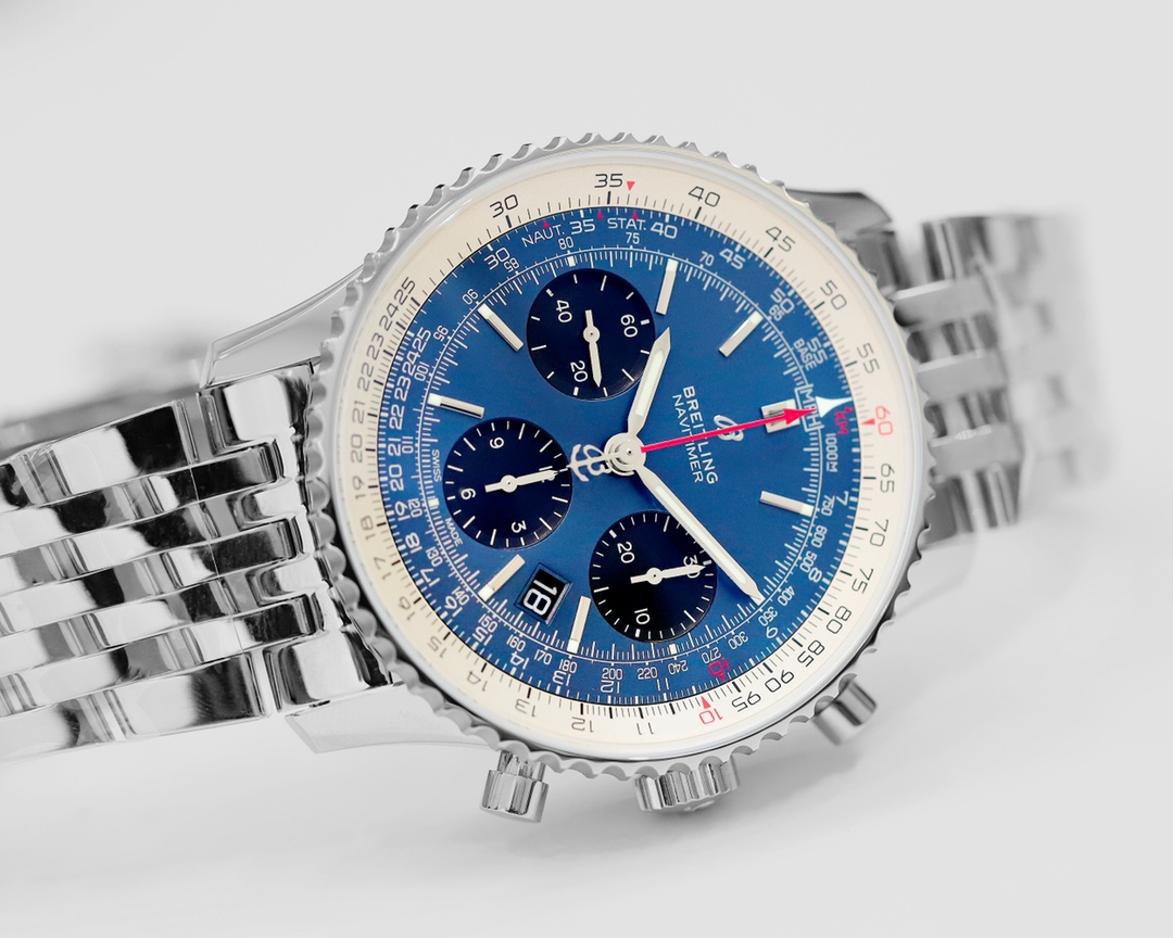 • Breitling Navitimer B01 43mm Blue Black Dial Steel Bezel Steel Strap AB0121211C1A1