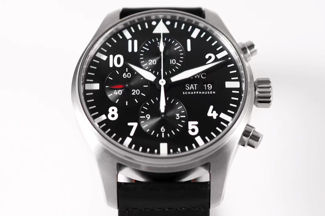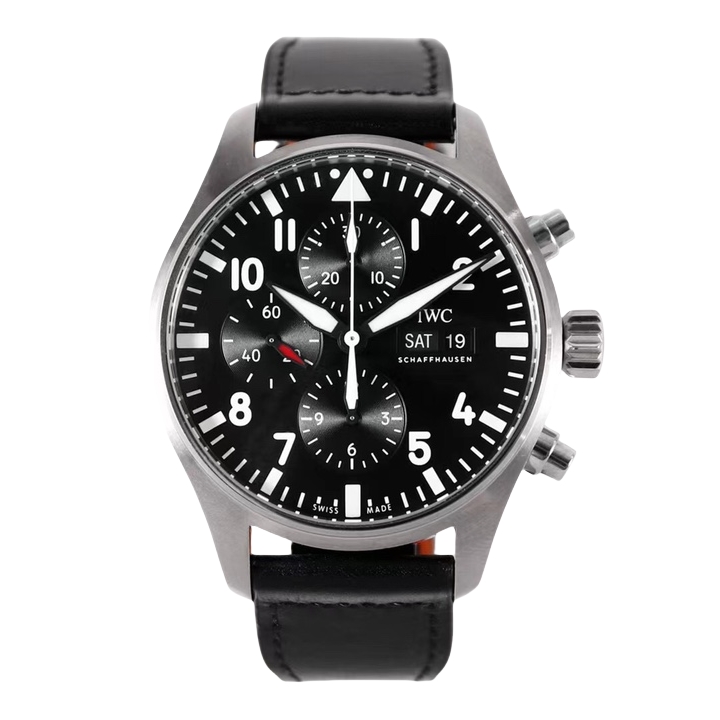 IWC Pilot's Watches 43mm Black Dial Steel Bezel Black Leather Strap IW371701