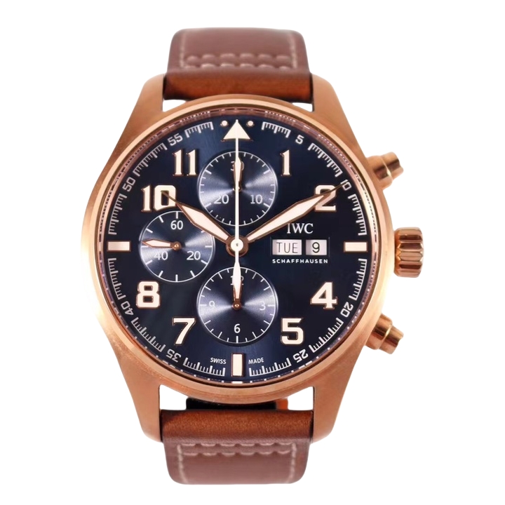 IWC Pilot's Watches 46.2mm Blue Dial Rose Gold Bezel Brown Leather Strap IW590303