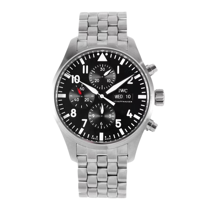 IWC Pilot's Watches 43mm Black Dial Steel Bezel Steel Strap IW377717