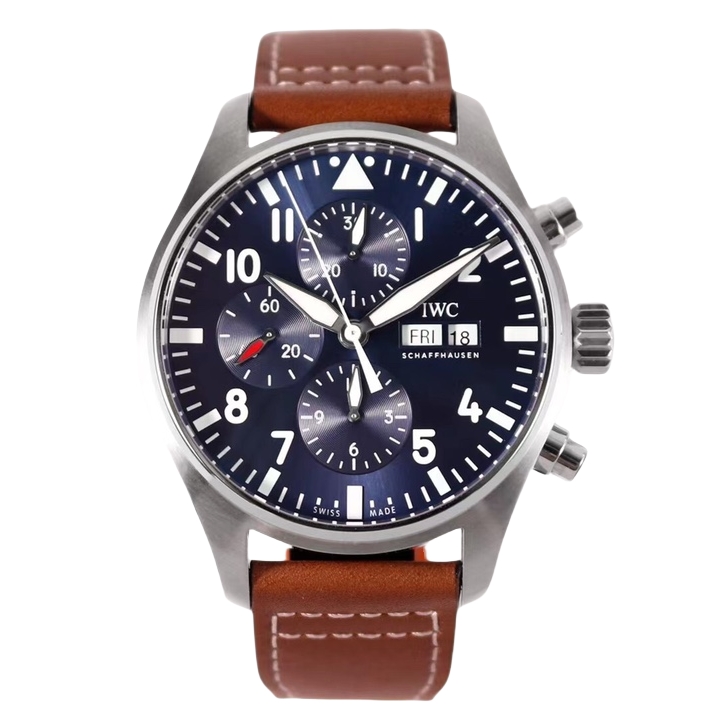 IWC Pilot's Watches 43mm Blue Dial Steel Bezel Brown Leather Strap IW377714
