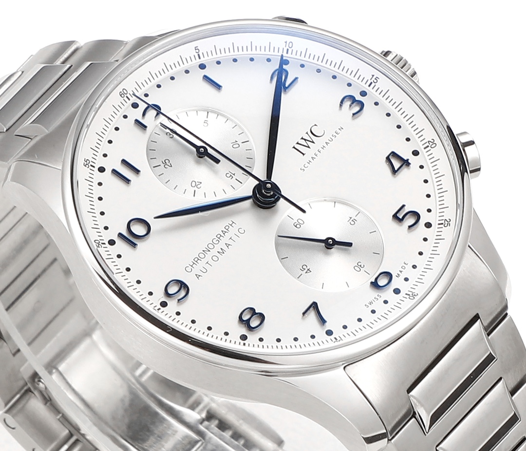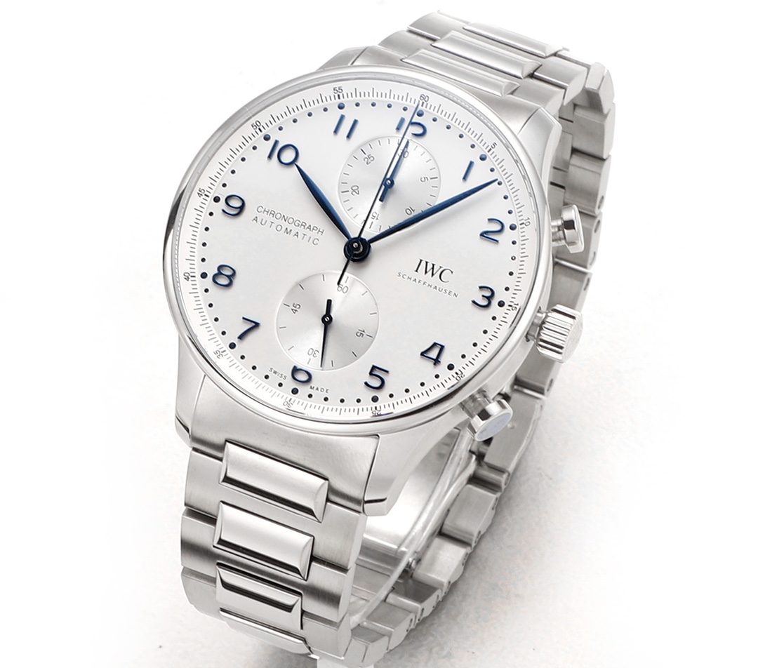 | IWC Portugieser 41mm White Dial Blue Watch Hands Steel Bezel Steel Strap IW371617 | |
