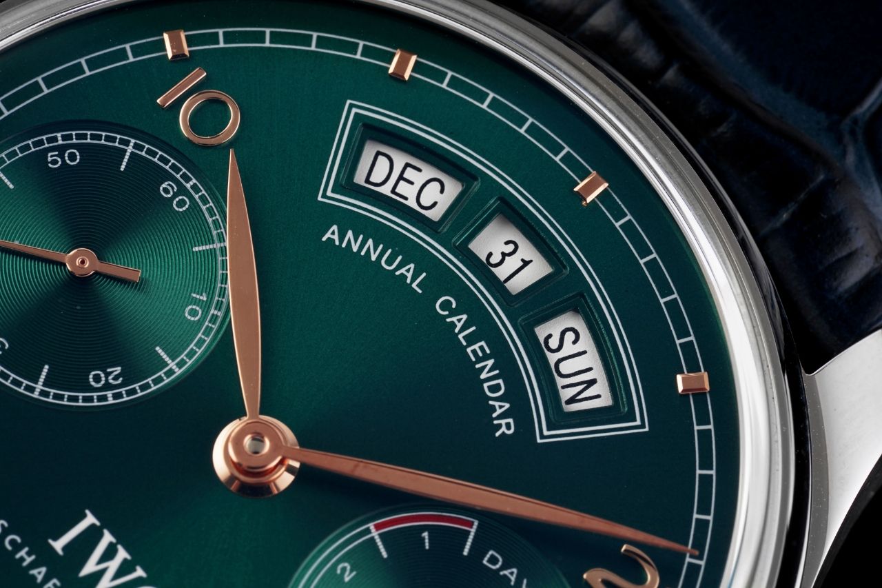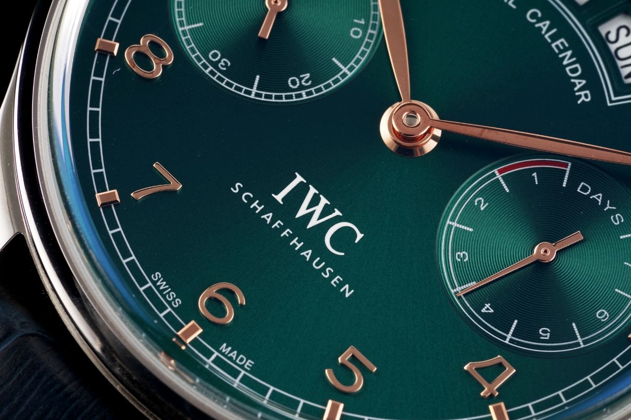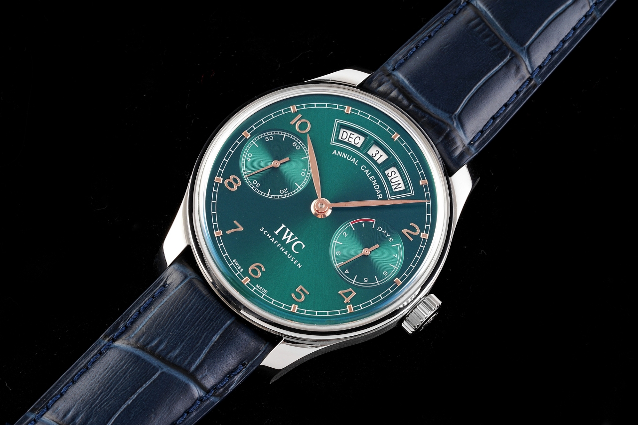 | IWC Portugieser 44.2mm Green Dial Steel Bezel Blue Leather Strap IW503510 | |