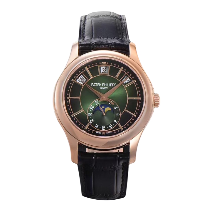 Patek Philippe Complications 40mm Green Dial Rose Gold Bezel Black Leather Strap 5205R-011
