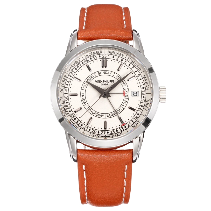 Patek Philippe Grand Complications 40mm White Dial Steel Bezel Brown Leather Strap 5320G-001