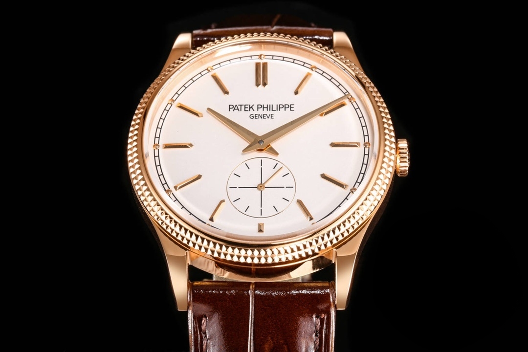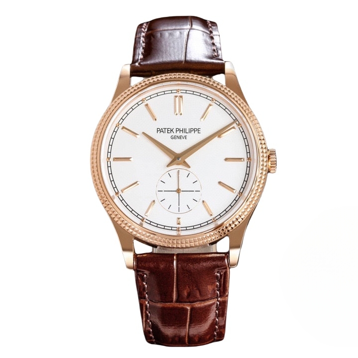 Patek Philippe Calatrava 39mm White Dial Rose Gold Bezel Brown Leather Strap 6119R-001
