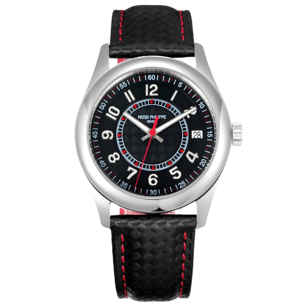 Patek Philippe Calatrava 40mm Black Red Dial Steel Bezel Black Leather Strap 6007G-010