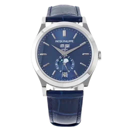Patek Philippe Complications 38.5mm Blue Dial Steel Bezel Blue Leather Strap 5396G-017