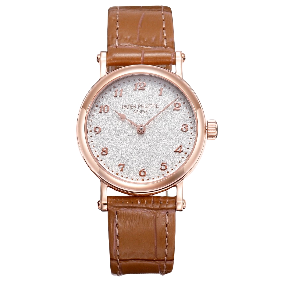 Patek Philippe Calatrava 38mm White Dial Rose Gold Bezel Brown Leather Strap 5153R-001