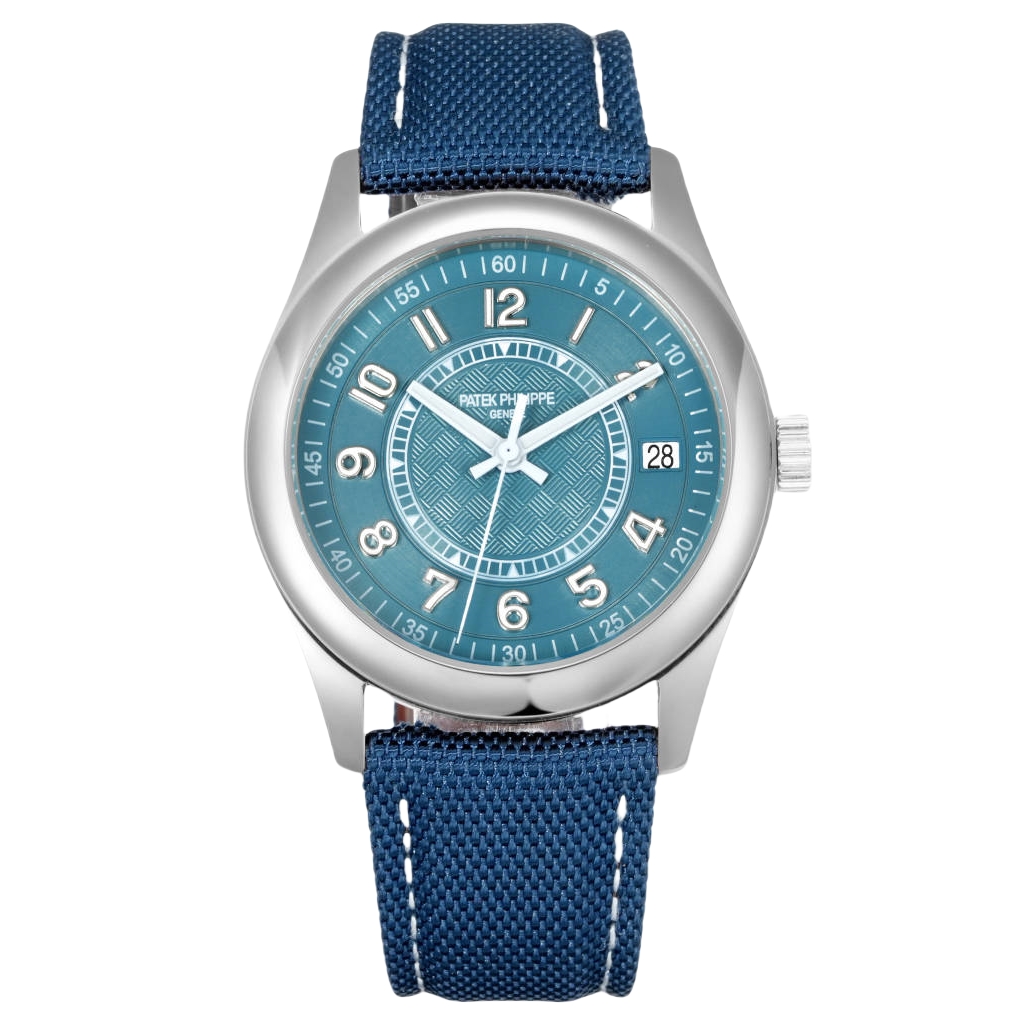 Patek Philippe Calatrava 40mm Grey Blue Dial Steel Bezel Grey Blue Denim Strap 6007A-001