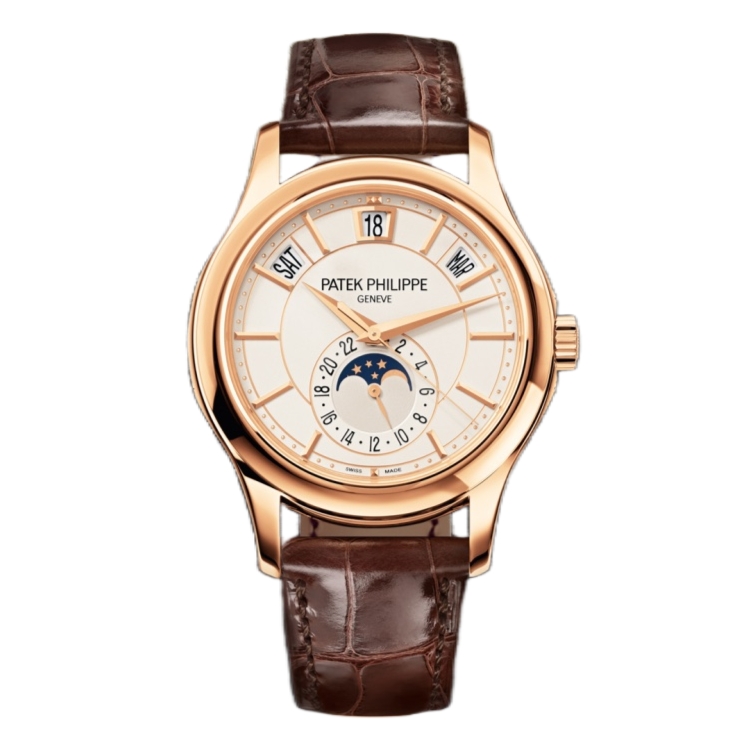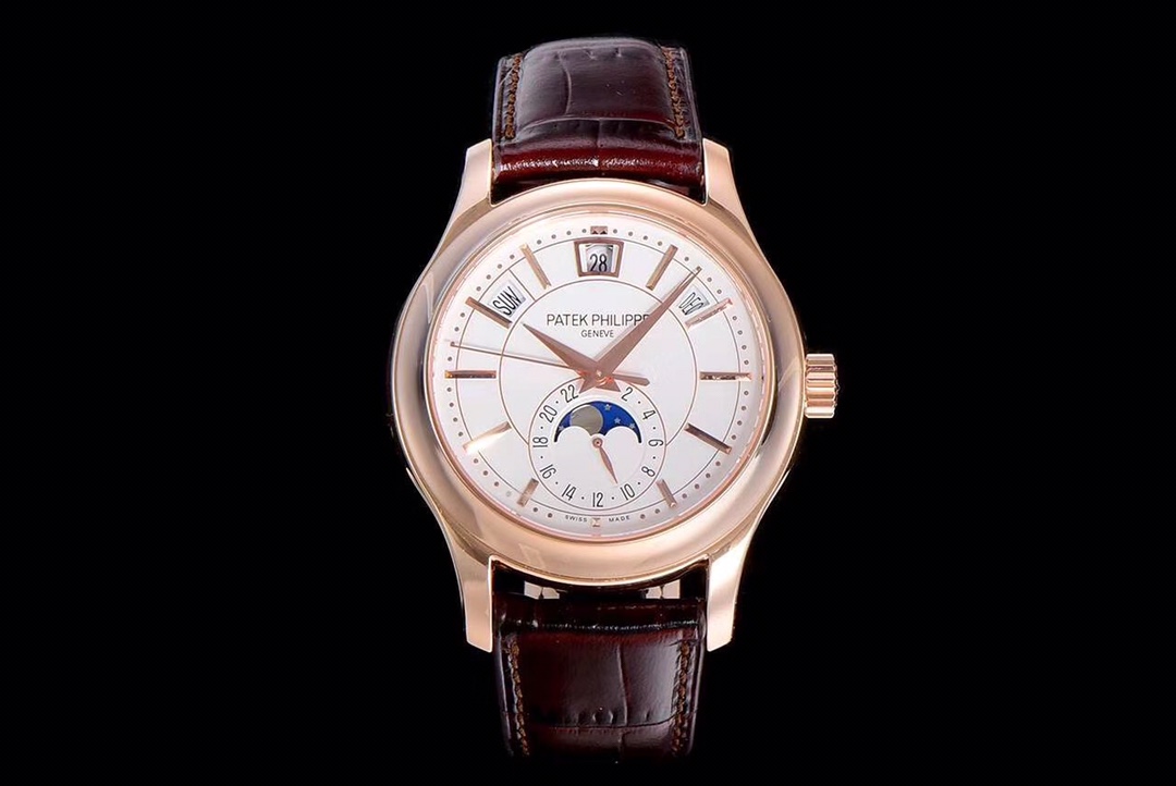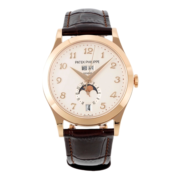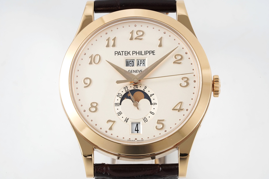 Patek Philippe Complications 38.5mm White Dial Rose Gold Bezel Brown Leather Strap 5396R-012