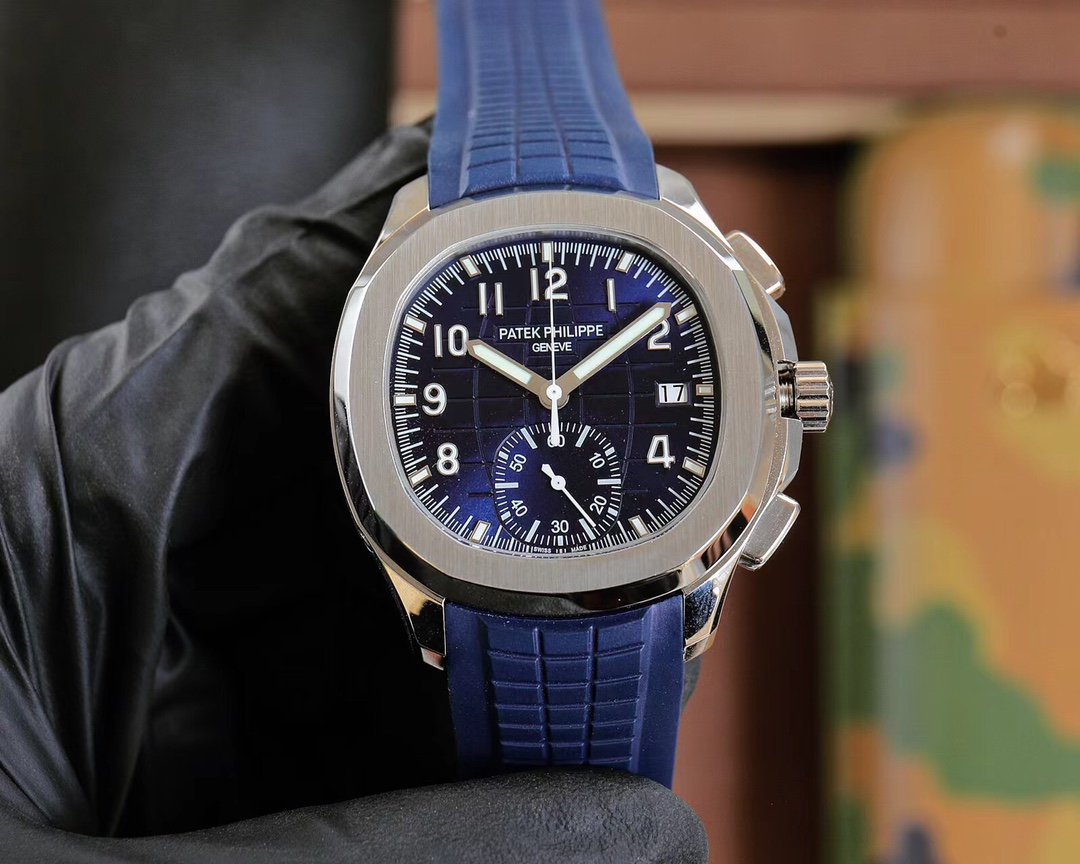 Patek Philippe Aquanaut 42.2mm Blue Dial Seetl Bezel Blue Rubber Strap 5968G-001