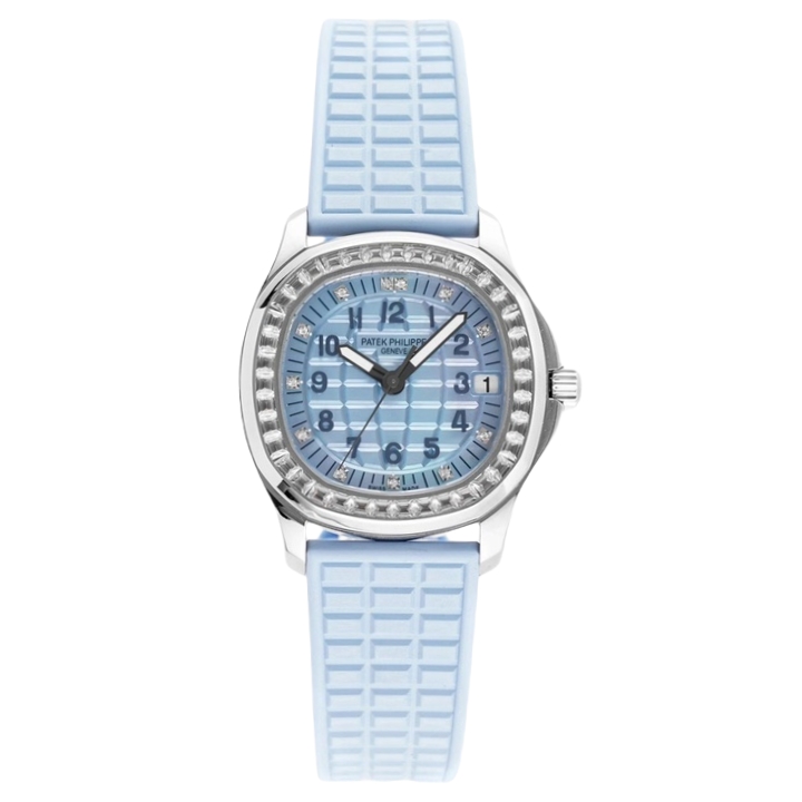 Patek Philippe Aquanaut 35.6mm Blue Dial Steel Diamond Bezel Blue Rubber Strap 5067A-025 Woman Ladies