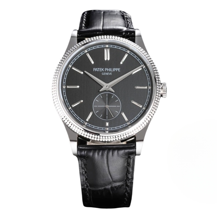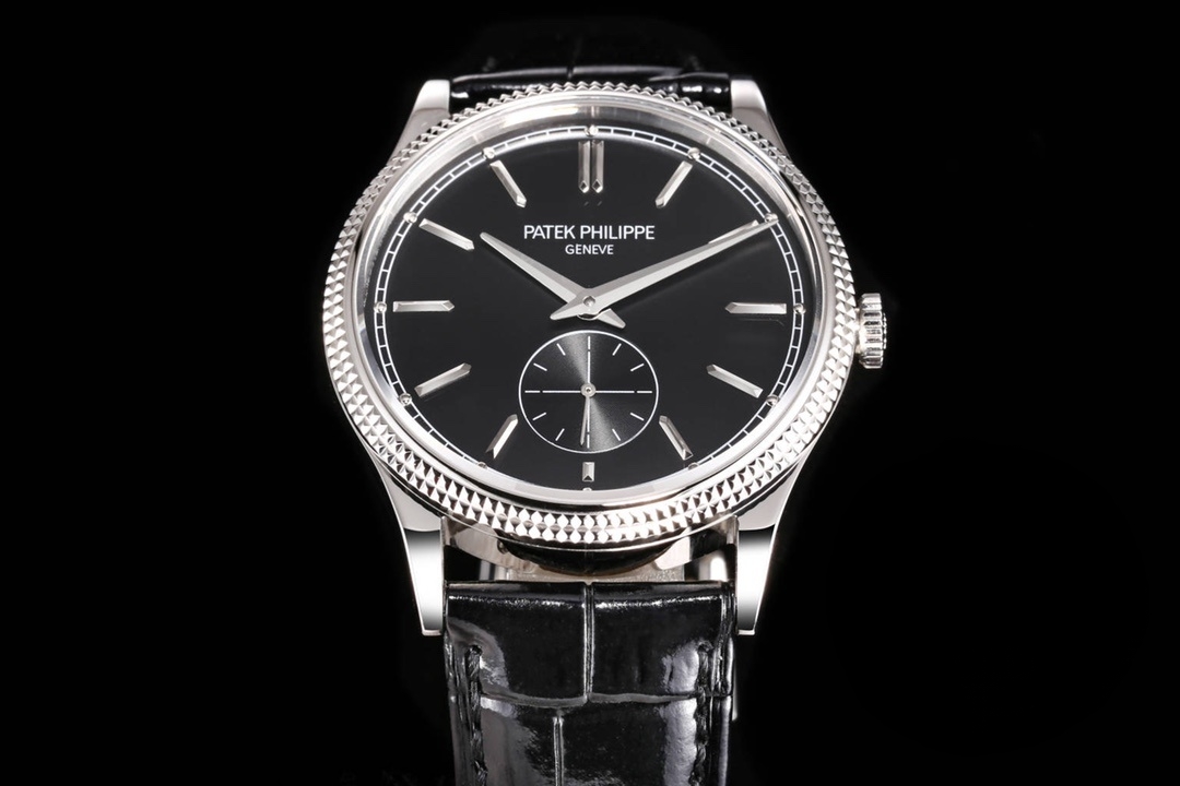 Patek Philippe Calatrava 39mm Black Dial Steel Bezel Black Leather Strap 6119G-001