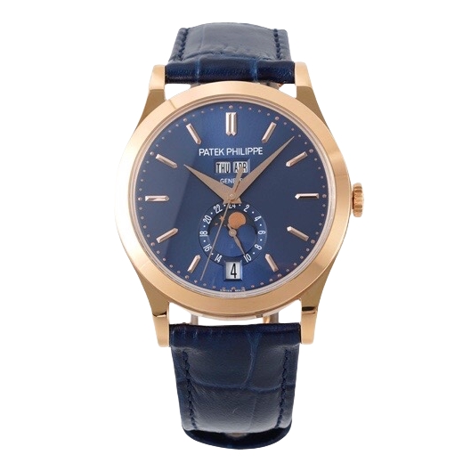 Patek Philippe Complications 38.5mm Blue Dial Rose Gold Bezel Blue Leather Strap 5396R-015