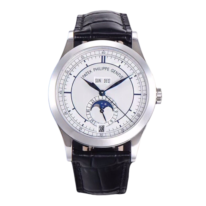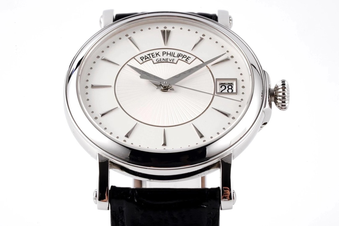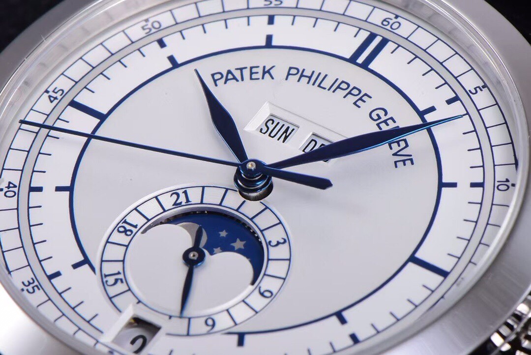 Patek Philippe Grand Complications 38mm White Dial Steel Carving Bezel Black Leather Strap 5160/500G-001