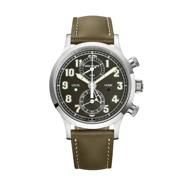 Patek Philippe Complications 42mm Khaki Green Dial Steel Bezel Khaki Green Leather Strap 5924G-010