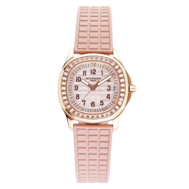 Patek Philippe Aquanaut 35.6mm White Dial Rose Gold Diamond Bezel Pink Rubber Strap 5067R-029 Woman Ladies