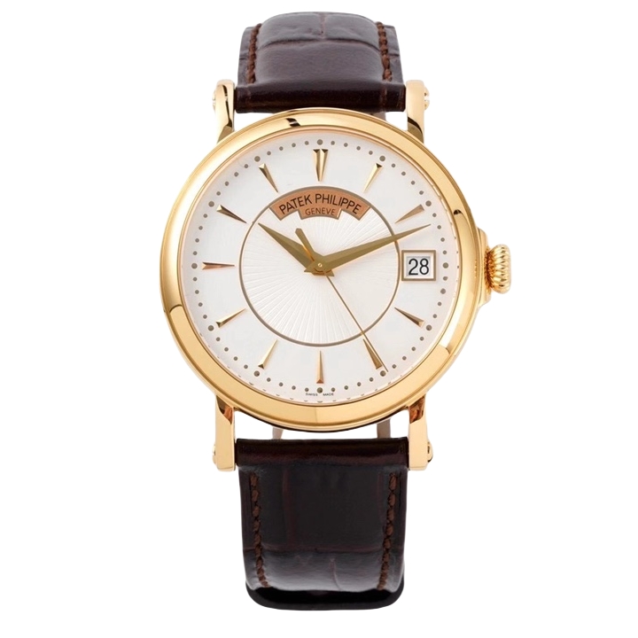 Patek Philippe Calatrava 38mm White Dial Yellow Gold Bezel Brown Leather Strap 5153J-001