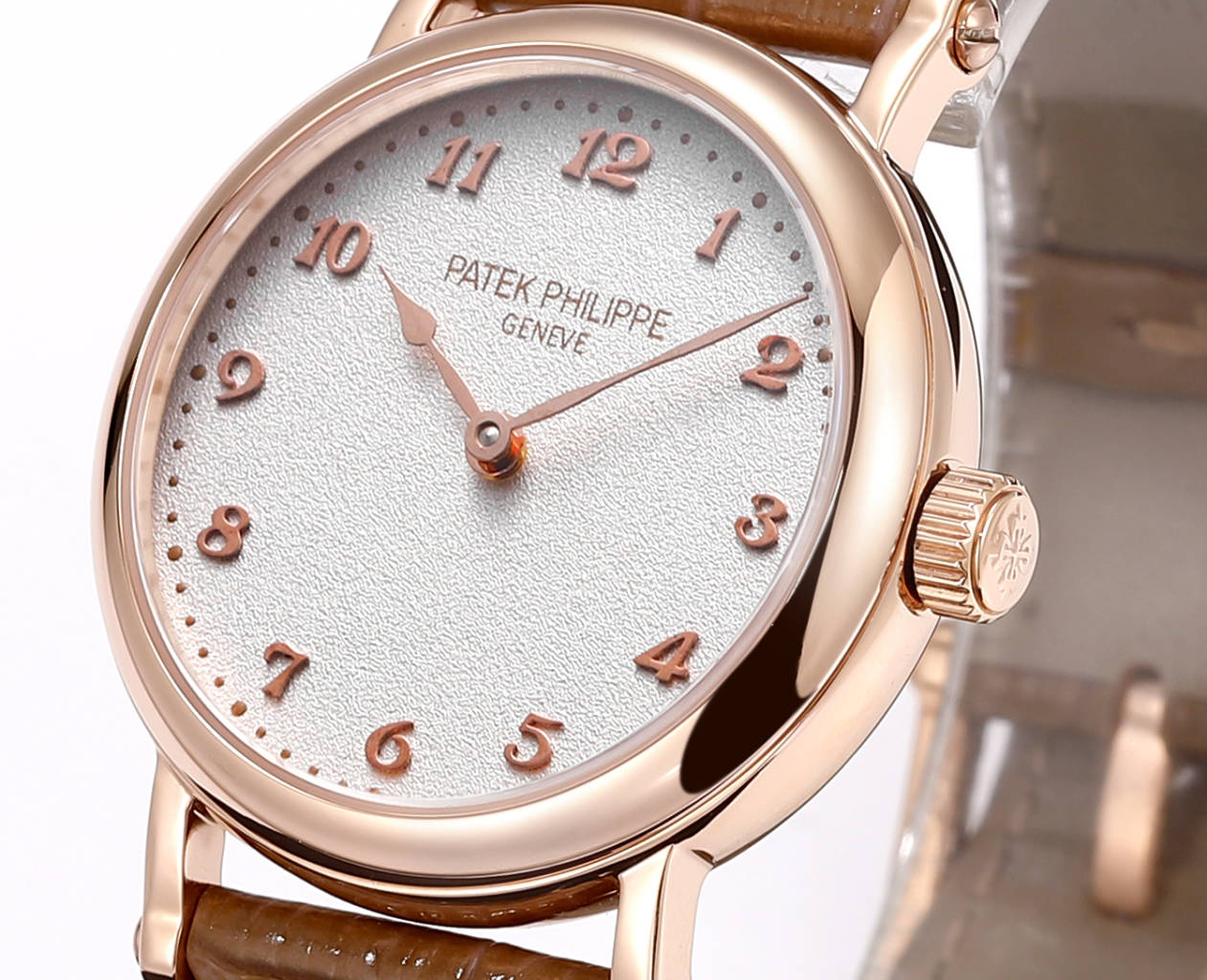 Patek Philippe Calatrava 34.6mm White Dial Rose Gold Bezel Brown Leather Strap 7200R-001 Woman Ladies