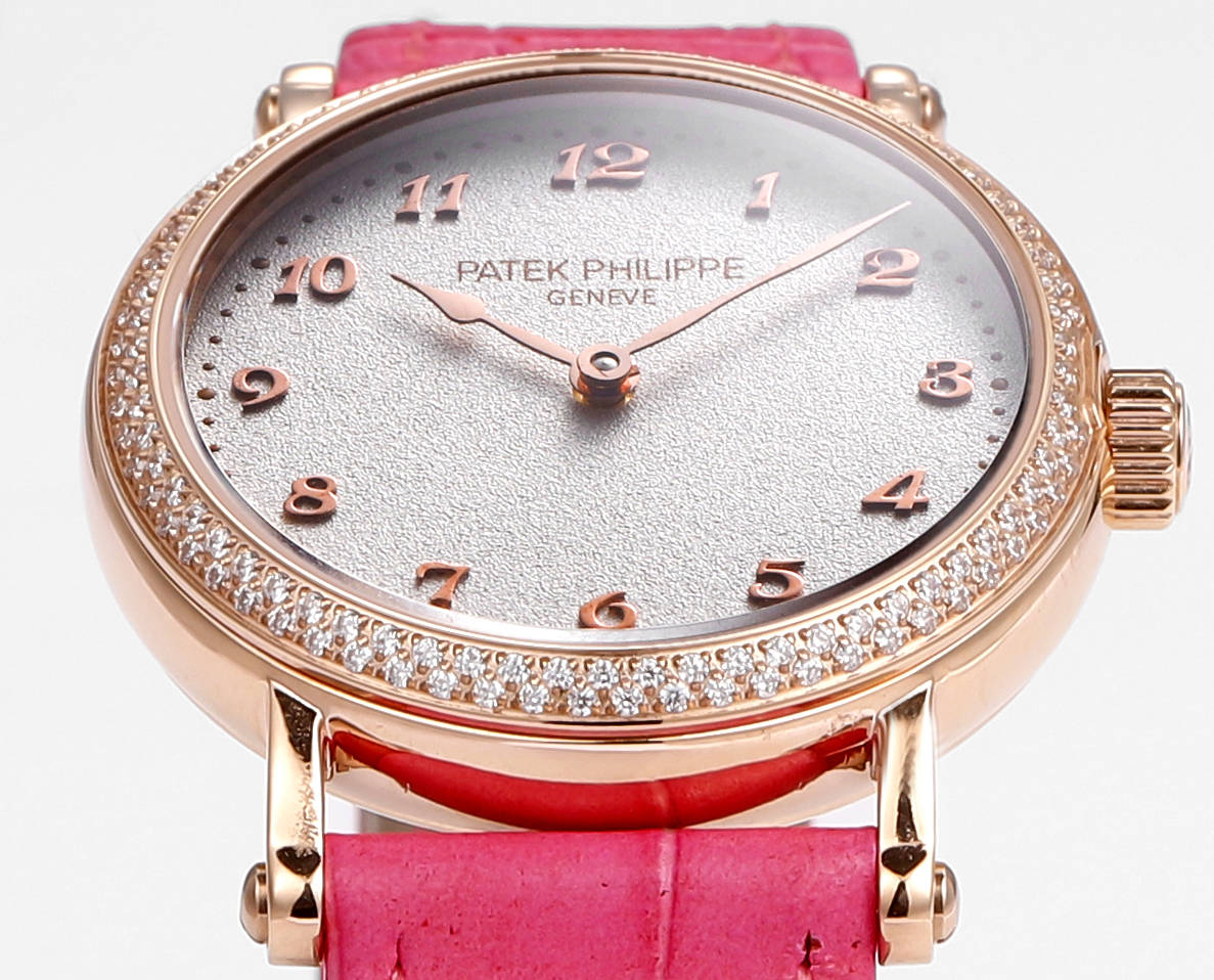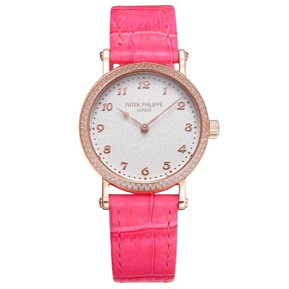 Patek Philippe Calatrava 34.6mm White Dial Rose Gold Diamond Bezel Rose Red Leather Strap 7200/200R-001 Woman Ladies