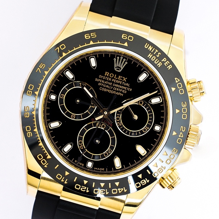 | Rolex Daytona Cosmograph 40mm Dial Full Black Yellow Gold Black Strap 116518LN-0043 | |