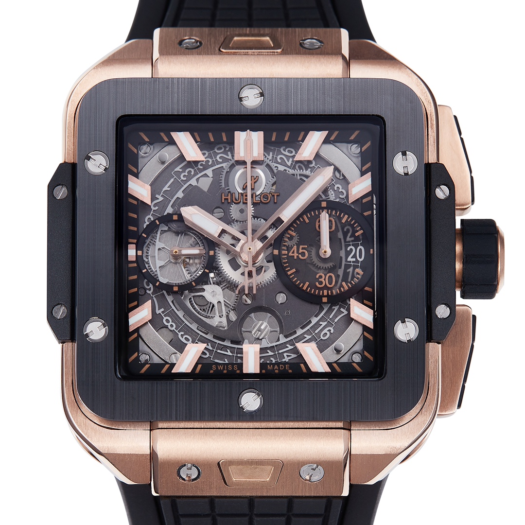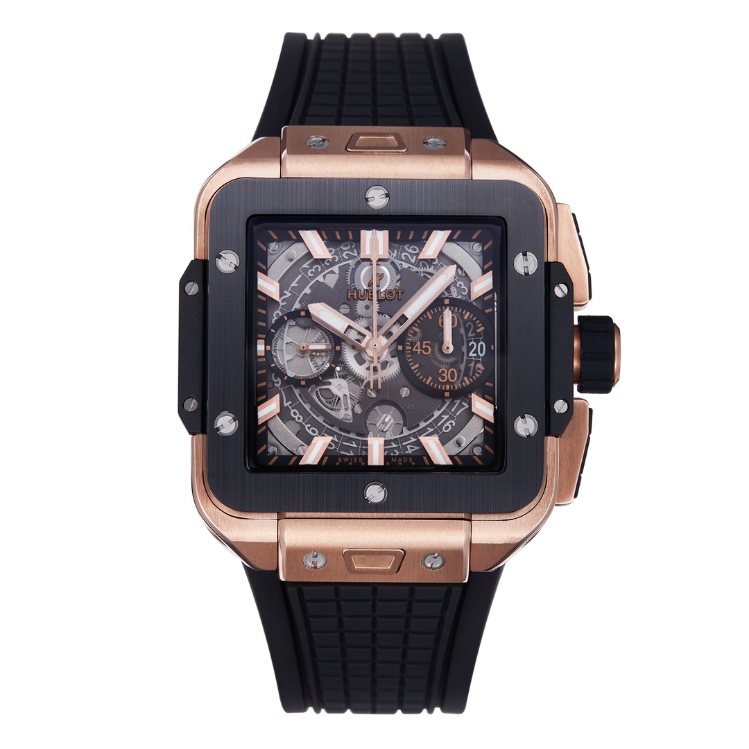 Hublot Square Bang Unico 42mm Grey Dial Rose Gold Bezel Black Rubber Strap 821.OX.0180.RX