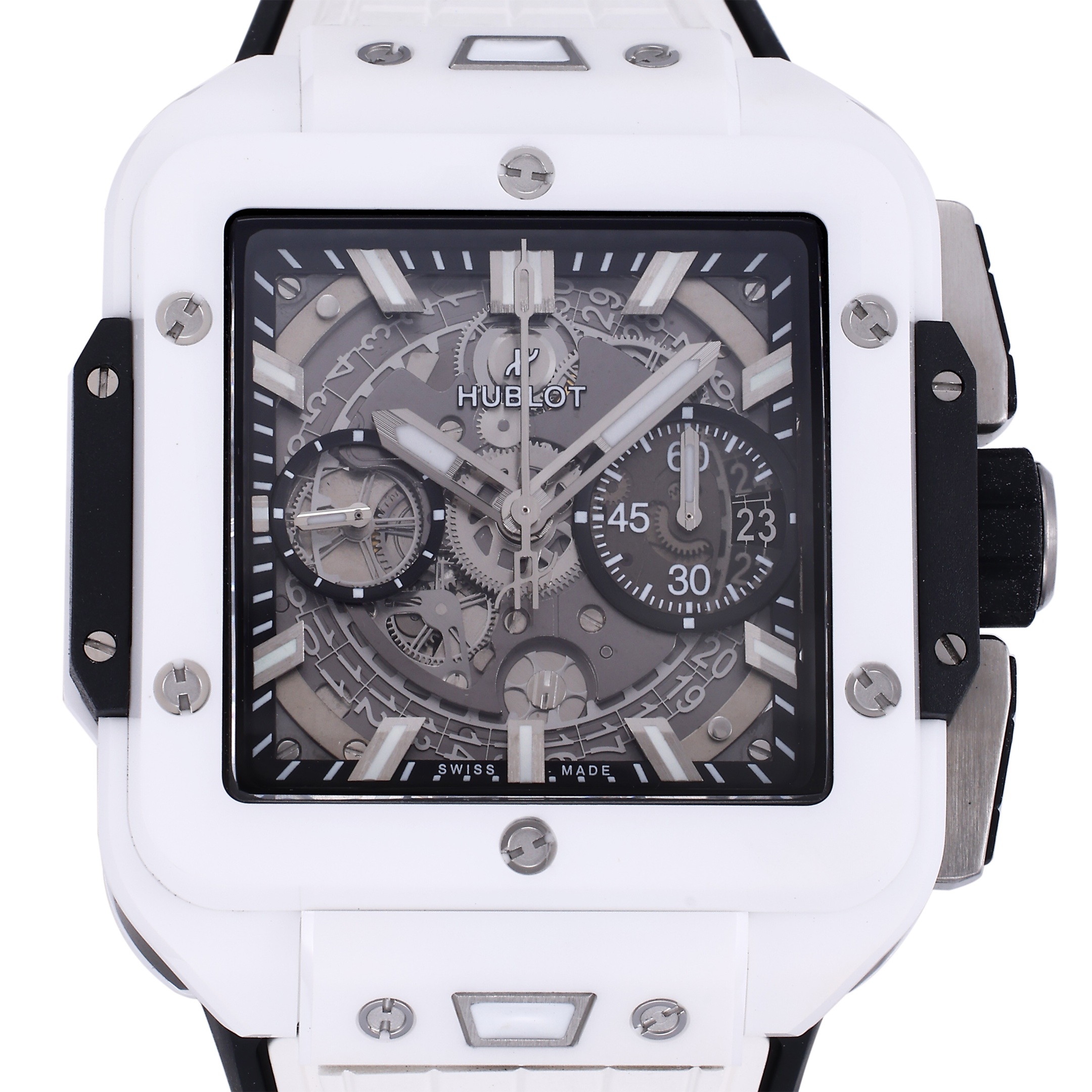 Hublot Square Bang Unico 42mm Grey Dial White Ceramic Bezel White Black Rubber Strap 821.HX.0170.RX