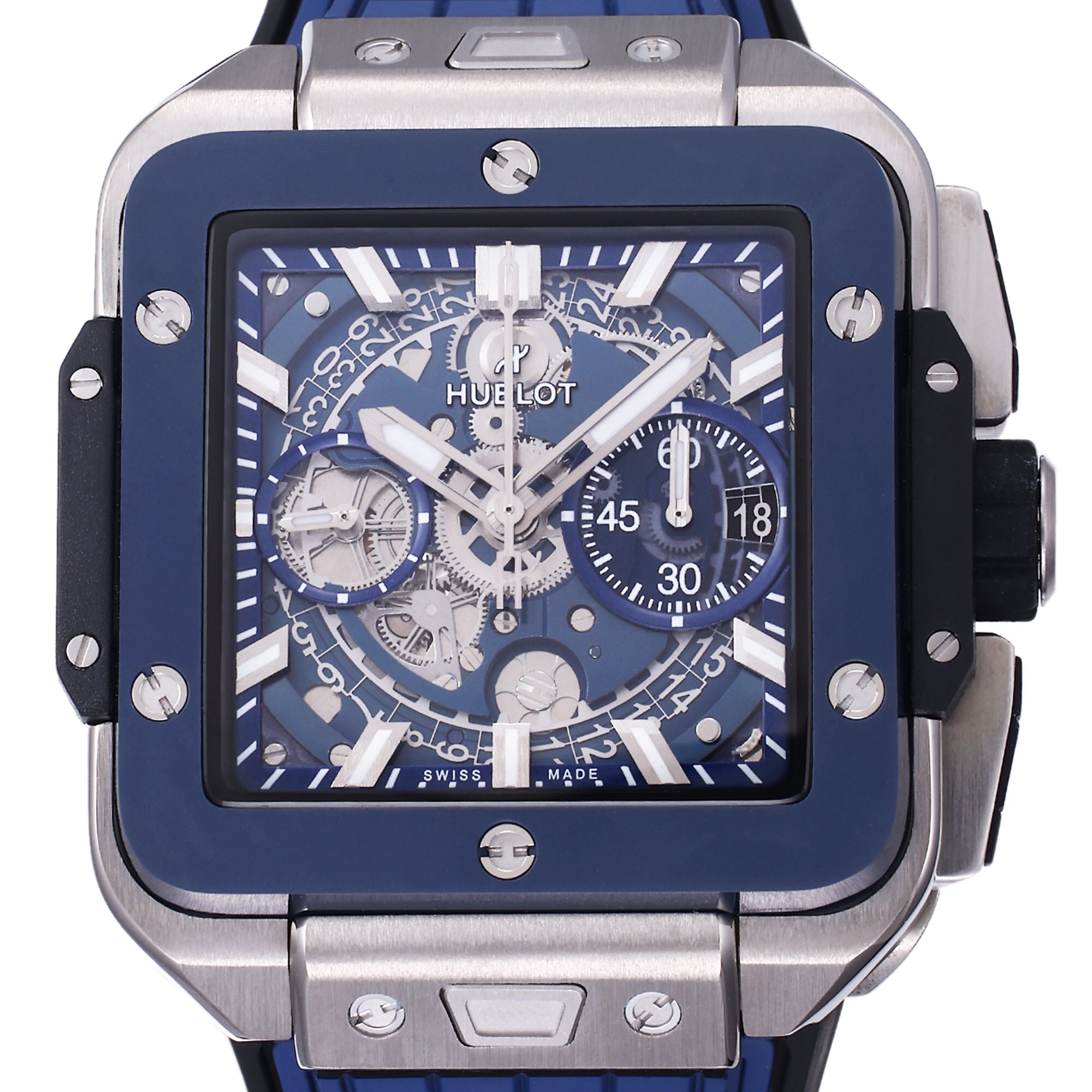 Hublot Square Bang Unico 42mm Grey Dial Steel Blue Bezel Blue Rubber Strap 821.NL.5170.RX