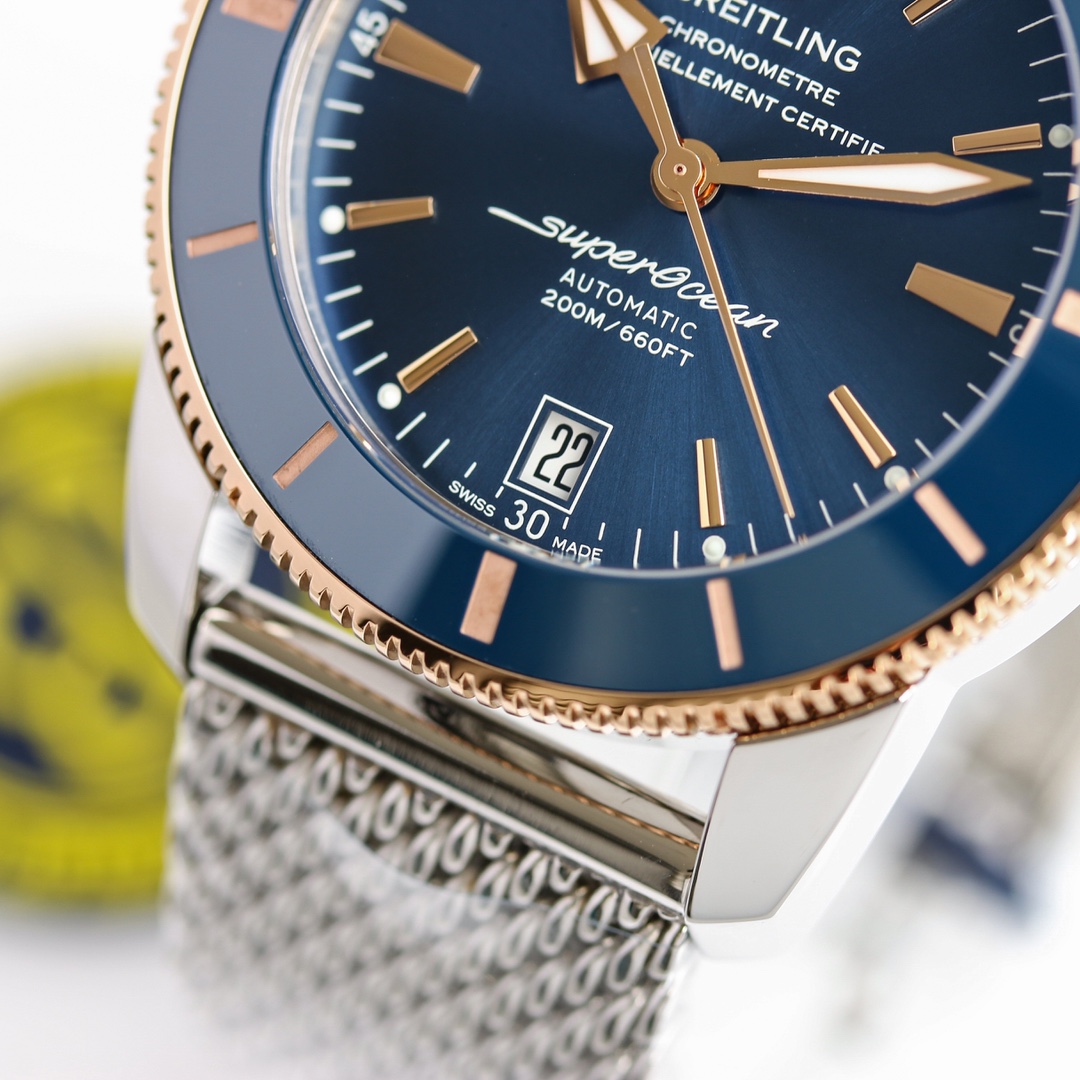 | Breitling SuperOcean Héritage 42mm Blue Dial Blue Rose Gold Bezel Steel Strap UB2010161C1A1 | |