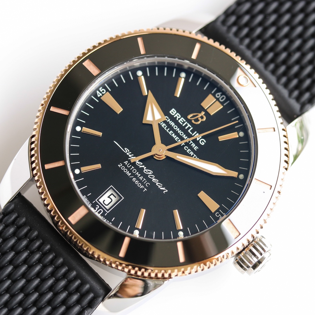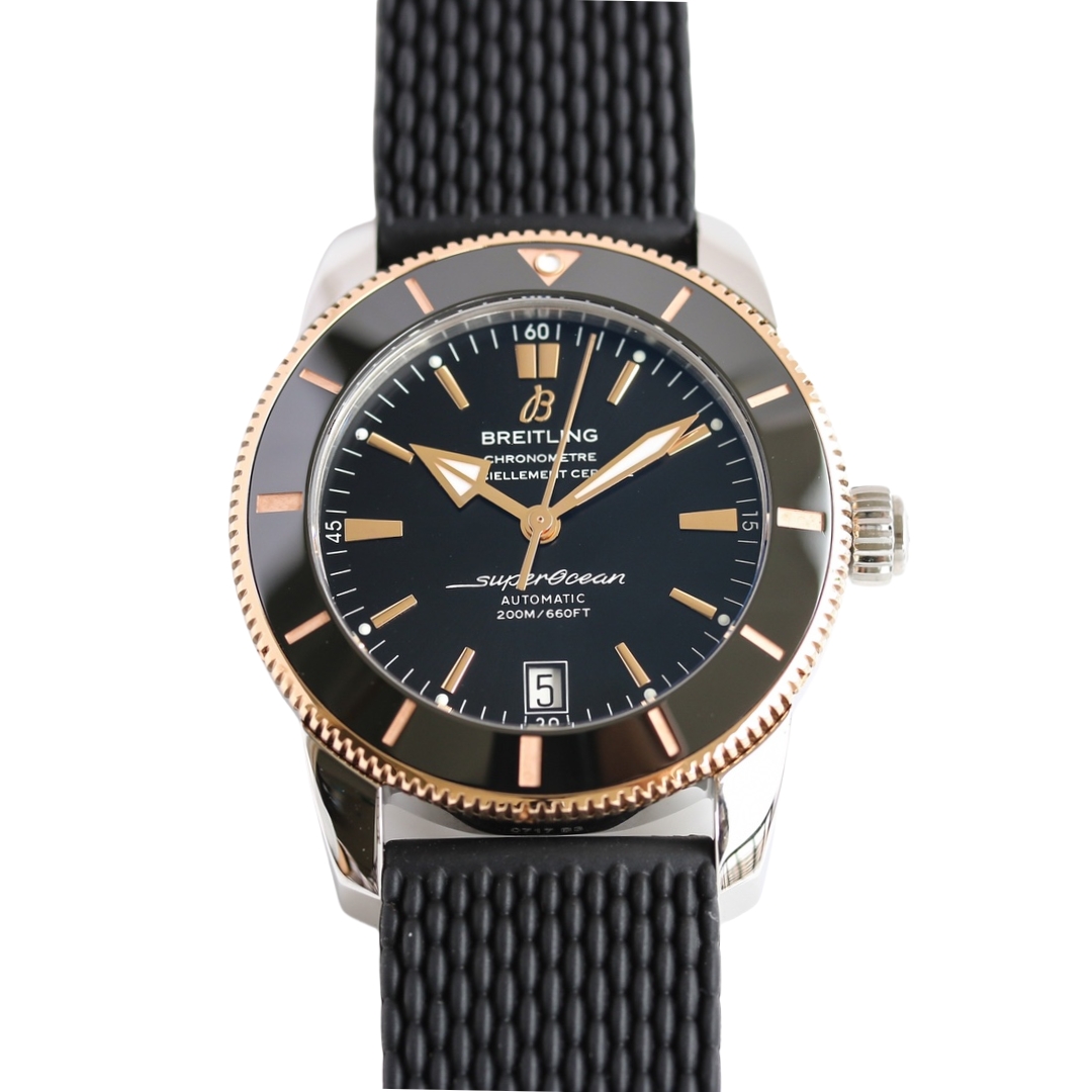 Breitling SuperOcean Héritage 42mm Black Dial Black Rose Gold Bezel Steel Strap UB2010121B1A1