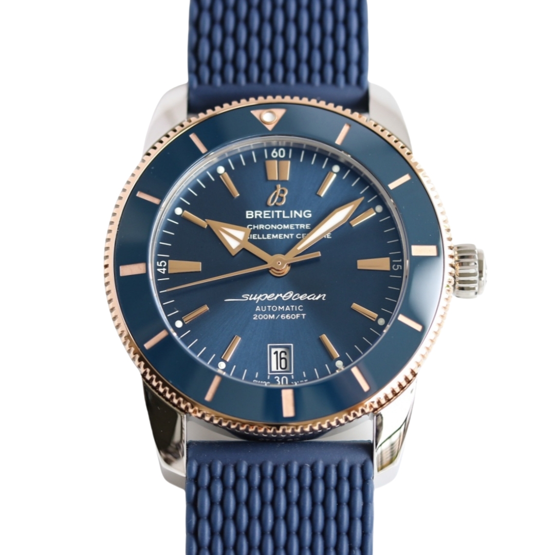 Breitling SuperOcean Héritage 42mm Blue Dial Blue Rose Gold Bezel Blue Rubber Strap UB2010161C1S1