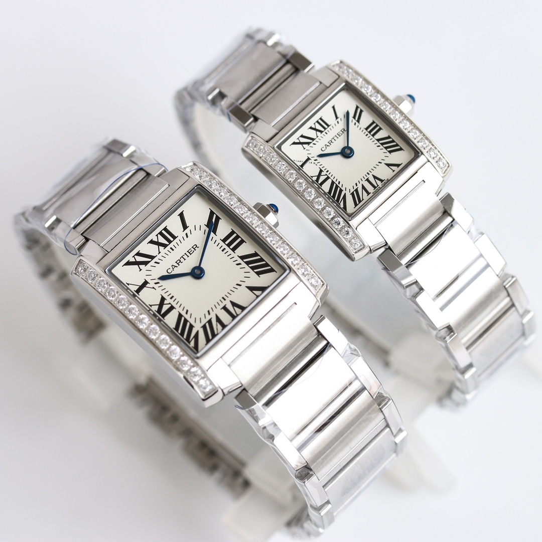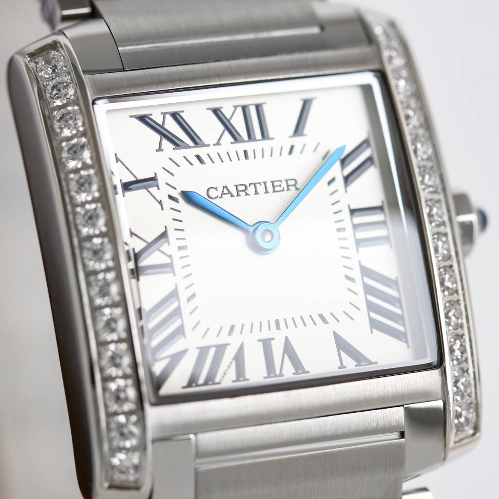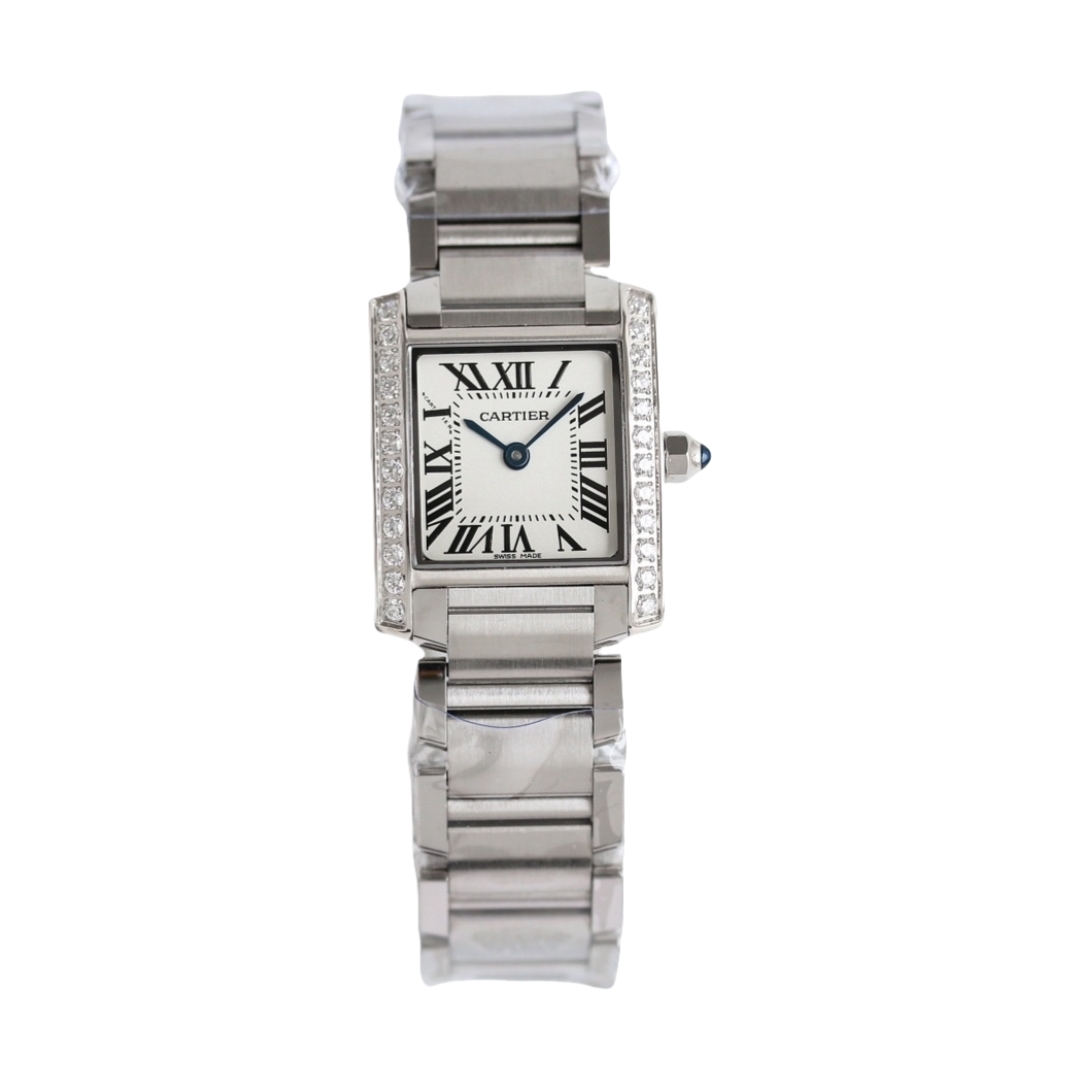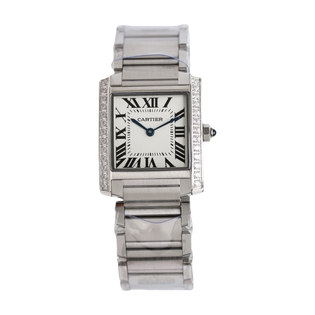 | Cartier Tank 30mm x 25mm White Dial Steel Diamond Bezel W4TA0009 Woman Ladies | |