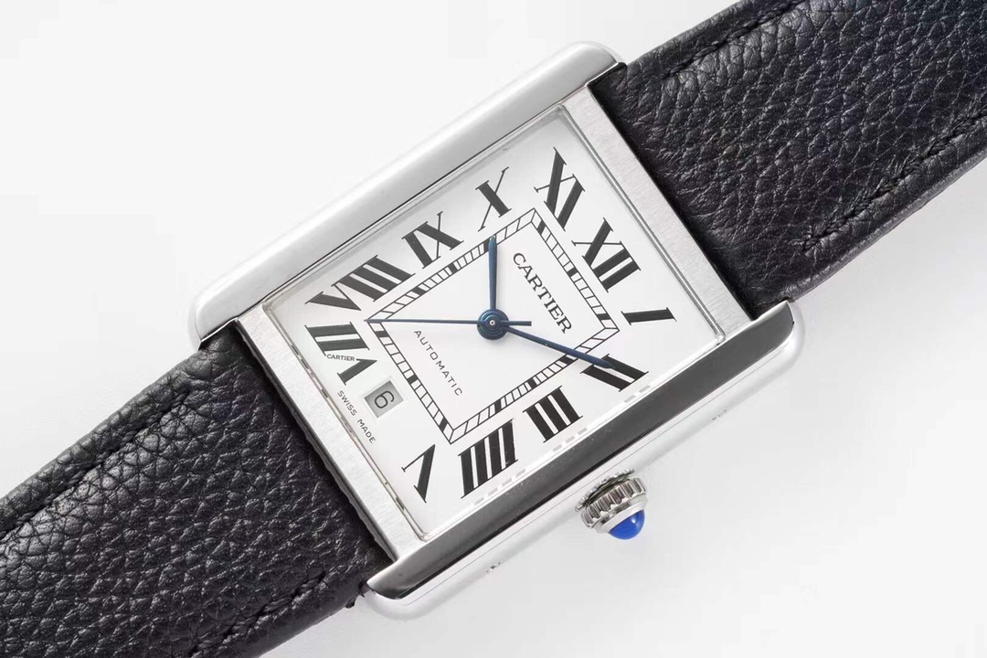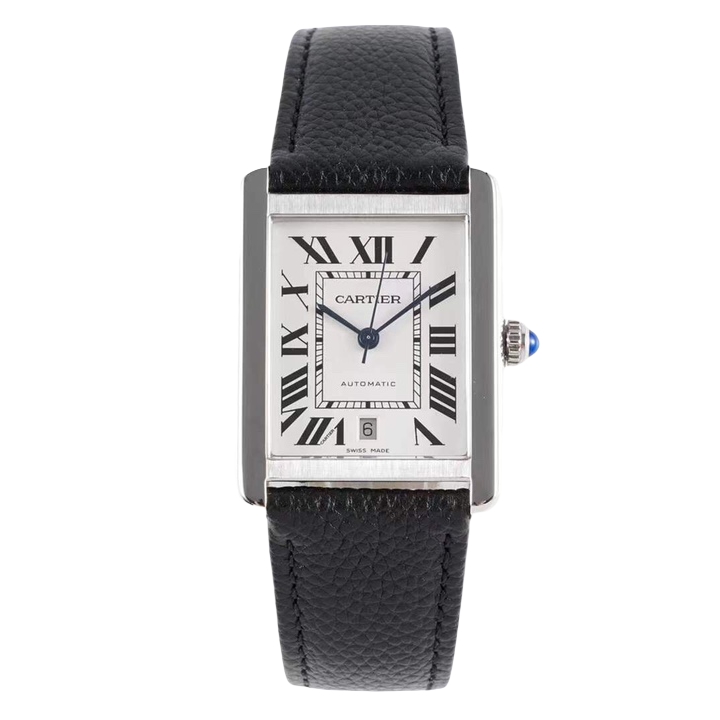 Cartier Tank 41mm x 31mm White Dial Steel Bezel Black Leather Strap WSTA0040